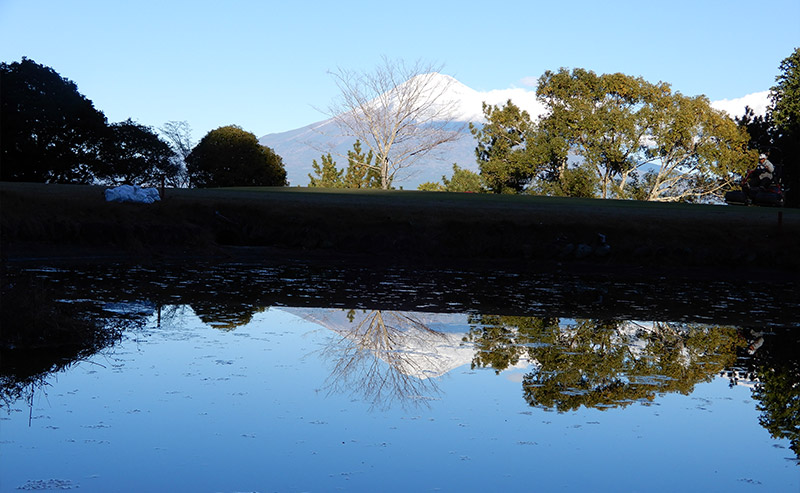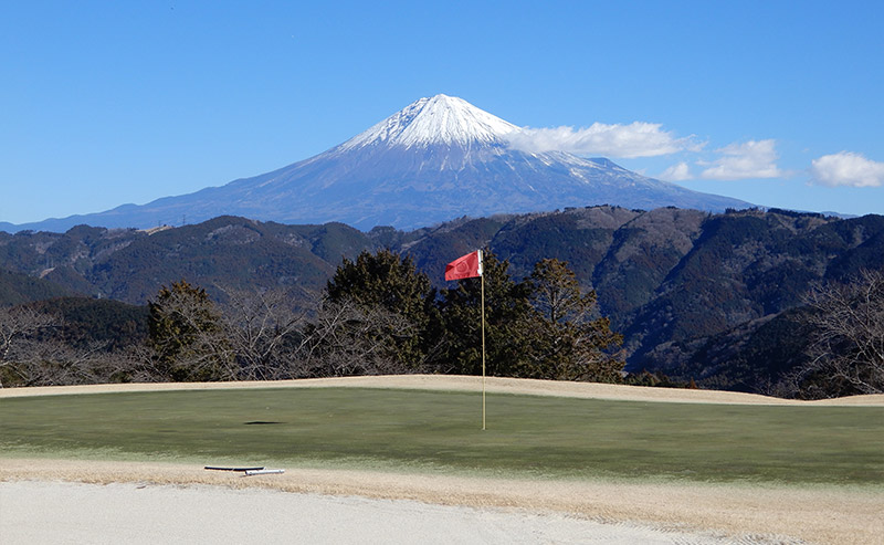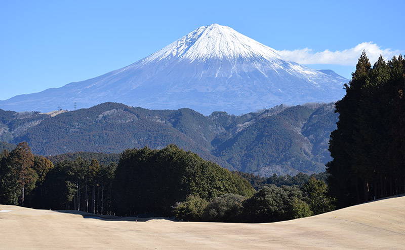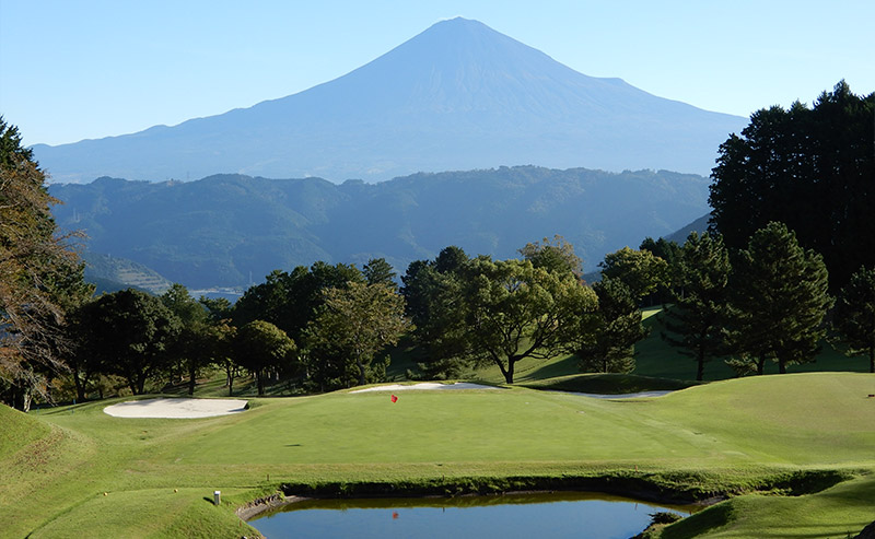 東、西コースとも自然の地形を生かした池越えや 谷越えドッグレッグと変化に飛んだ多彩なコース。 特に東の8番パー3は雄大な富士に向かっての 池越えのショットは名物ホールとして好評です。
