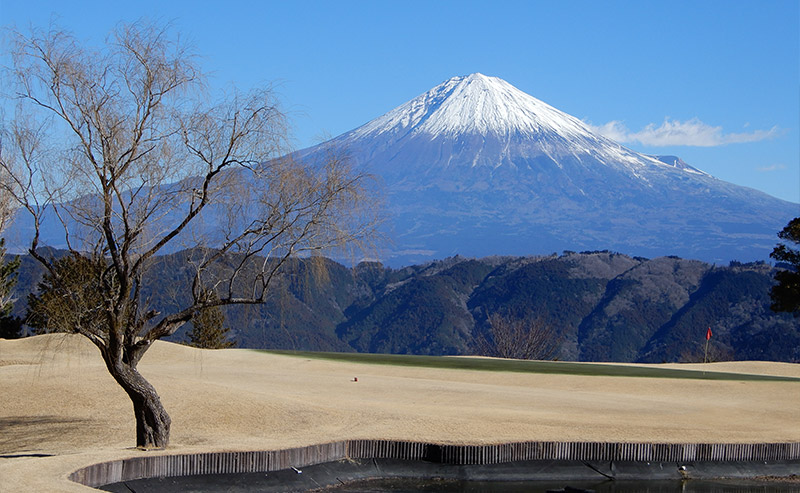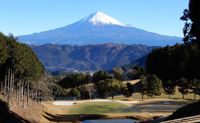 東、西コースとも自然の地形を生かした池越えや 谷越えドッグレッグと変化に飛んだ多彩なコース。 特に東の8番パー3は雄大な富士に向かっての 池越えのショットは名物ホールとして好評です。